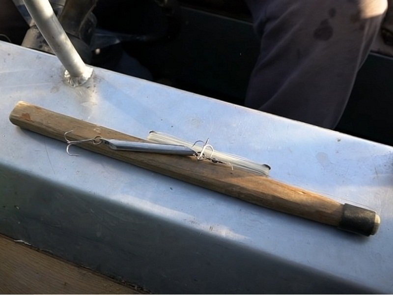 Леска «тыркалки», «подергуши», «тюкалки» на первый взгляд рассчитана на акулу или, в крайнем случае, на американского маскинонга. Очень толстая. Почему? Как объясняют местные рыбаки, во-первых, уловистая блесна — это кормилица и нередко достояние семьи, передающееся по наследству. А во-вторых, за толстую леску безопаснее вываживать крупную рыбу, чтобы не порезать пальцы.