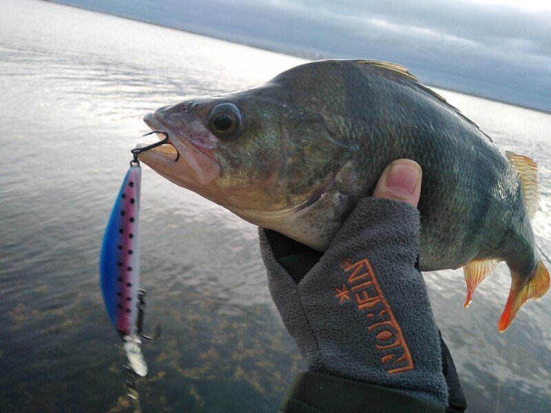 Окунь. Самый предсказуемый и стабильный хищник в наших окрестностях. Ловится на воблеры на протяжении всего времени года, когда единственное исключение составляет лишь самый разгар лета и максимально знойная жара. Чем активнее Вы будете анимировать Silver Shiner, и чем шире и амплитуднее получится ваша игра — тем больше вероятность того, что поклёвка состоится. Зимой же всё по-другому. Нет, проводка остаётся ровным счётом такой же, но паузы нужно увеличивать в двое, а то и в трое. Бывало и так, что полосатый преследует приманку, но категорически отказывается идти на контакт. Тогда воблеру не только нужно дать «повисеть» в толще воды, но и сократить рывки до такой степени, чтобы приманка слегка вздрогнула, без сильного смещения вперёд, и тогда практически наверняка Silver Shiner будет атакован.