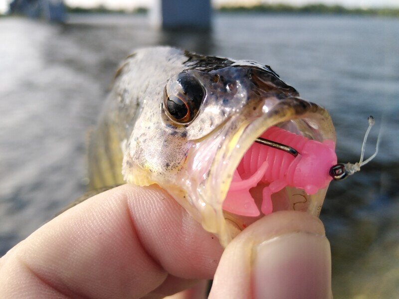 Так уж повелось, что некоторые рыбалки сводятся к тому, что самый простой и предсказуемый вариант для ловли полосатого разбойника — это отводной поводок. Первая и совершенно непроизвольная поездка, абсолютное отсутствие уверенности в поимке в силу выбранного места, и лишь банальное желание понять, как же правильно работать с новой приманкой, как неожиданная поклёвка отвлекла меня от собственных мыслей. Окунь, и весьма спортивного размера очень жадно атаковал Insector, будто именно этот вкуснейшей пункт «меню» он и ждал всю свою сознательную жизнь. А потом снова и снова! К тому же размер, действительно поразил но не в лучшую сторону. Нет, нормального размера хвосты действительно были пойманы, но искренне удивлял тот факт, что полосатого разбойника не сильно смущал весьма достойный размер приманки по сравнению с его собственным. Да, и сам факт того, что рыба совершенно точно интересуется необычным подводным гостем — уже было сложно отрицать.