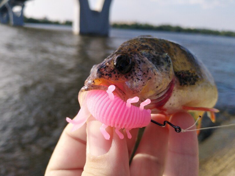 Следующая поездка, лёгкий джиг и неожиданная береговая щучка на Волге в утренних сумерках заносит в актив Insector ещё один вид рыбы, которому он оказался по вкусу. К тому же как выяснилось, на шарнирном оснащении реакция была не только на небольшие подбросы, но и на самое обычное волочение по дну. Что же касается отводного поводка, то на мой взгляд, это действительно самая настоящая стихия данной приманки. В следствии геометрии тела, на паузе приманка очень долго опускается на дно, одновременно совершая своими «крыльями» колебательные движение верх/вниз, тем самым не только привлекая хищника с весьма солидных расстояний, но и провоцируя на атаку даже самого пассивную и несговорчивую рыбу. Как итог очередная дерзкая поклёвка и перед камерой моего телефона уже красуется небольшой судачёк.