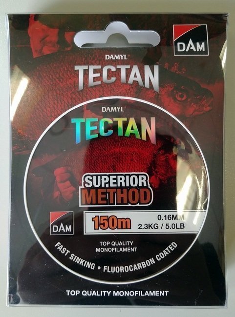 Хороший флюр в размотке по 100-150 метров как-то дорого выходит (прилично за 1000рублей), так что я выбрал компромисс — новую леску DAMYL Tectan Superior Method (345руб в Инет-магазине), прочитав в аннотации, что она мало тянется и имеет флюорокарбоновое покрытие.