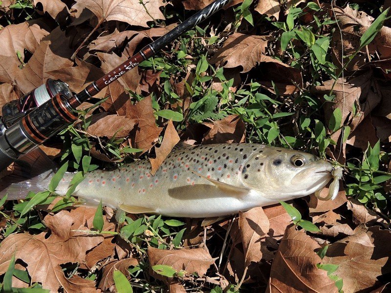 Из-за среднего строя удилища и не совсем мягкой вершины оно не бросается в глаза, но если присмотреться, то заметно. С весами 1-2 грамма я в большей мере ловил пелагическим джигом форель и голавля и могу сказать, что с забросом и точностью сложностей не было.