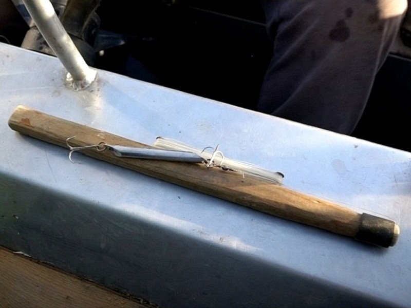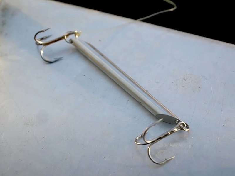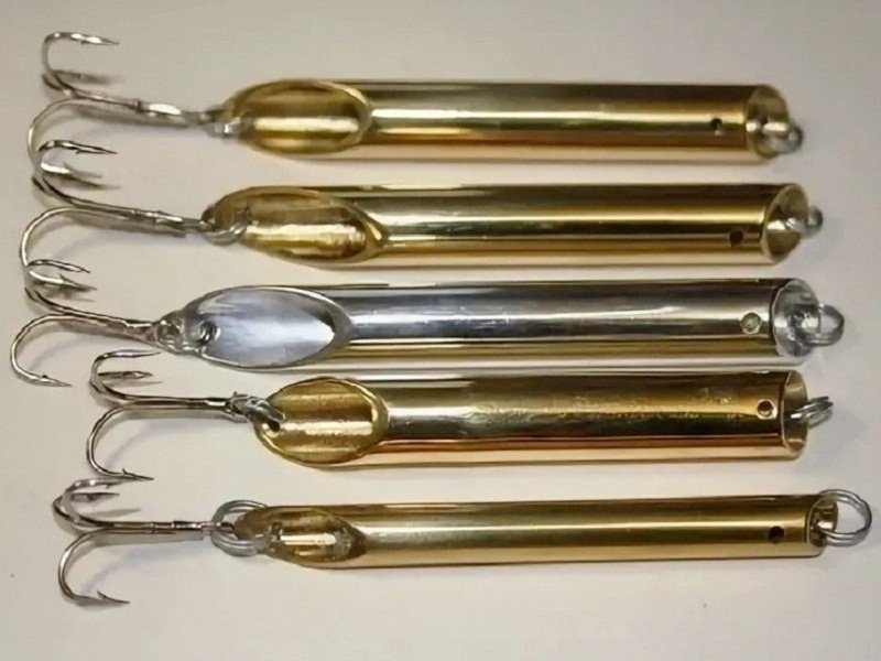 Особенно важна роль приманки в этой успешной рыбалке аборигенов. Самодельные блёсны-кормилицы передаются по наследству, как реликвия и достояние рода. А приманка представляет собой всего лишь трубку из нержавеющего светлого металла со срезанными концами, на которых крепятся тройники, сверху и снизу, то есть пара. На аналогичных и также эффективных блёснах-трубках, которые производят российские компании, обычно крепится один тройник. Это приманки-трубки производства компаний «Орловская блесна» и «Мастерская С. АМ.».