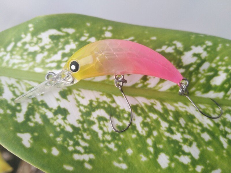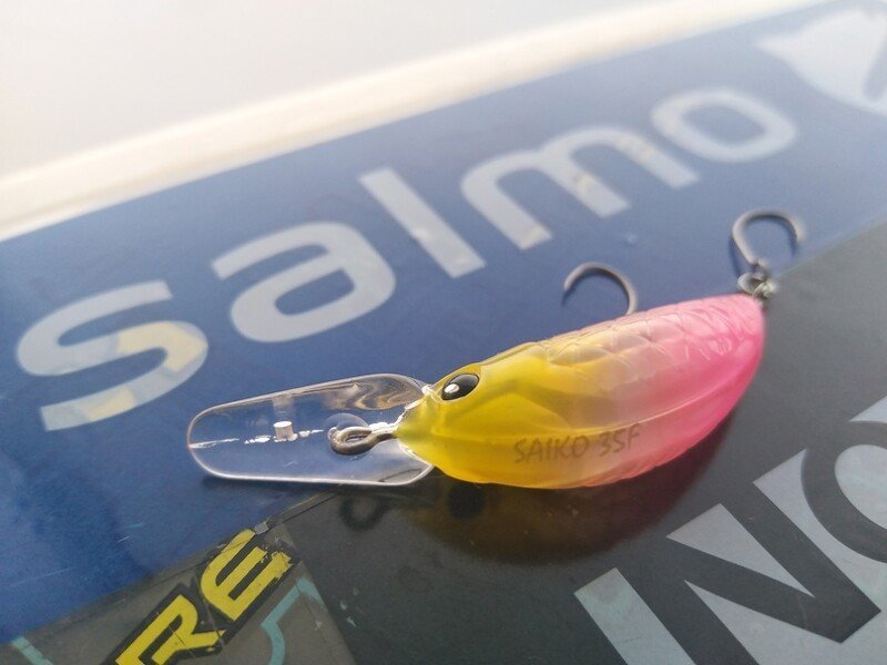 Небольшой изогнутый воблер практически сразу бросается в глаза на прилавке рыболовного магазина, так как довольно странная бананообразная форма тела заметно выделяет его среди всего многообразия данного класса приманок. Сам воблер выполнен в одном единственном размере в 35мм и имеет вполне закономерный вес в 2,5 грамма. Сочетание необычного изгиба плавно перетекающего от кончика спины до самой лопатки, как показала дальнейшая практика ловли, действительно способствует хорошим полётным характеристикам. Даже несмотря на тот факт, что как таковой системы дальнего заброса тут попросту нет. Внутри Saiko расположены два свободно перемещающихся по каналу шарика, которые хоть и смещаются в хвостовую часть при забросе увеличивая дальность полёта, но скорее всего больше выполняют роль стабилизации воблера в воде. Лопатка, к слову, тут тоже не совсем типичной формы. Имея заметное сужение, такая конструкция позволила добиться не только быстрого выхода на рабочую глубину, но и стабильной игры даже на самых медленных скоростях проводки.