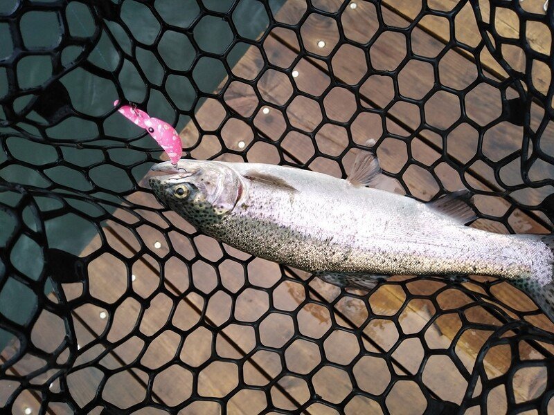 В моём случае, самое активное внимание рыбы получилось достичь при помощи привычного «stop&go», с одной лишь разницей, что вся подача происходит в более агрессивном исполнении. Со стороны, наверное, это и вовсе выглядит как обычная джиговая «ступенька», где довольно быстрый оборот катушки граничит с непродолжительной паузой не более 1-2 секунды. К тому же, как мне показалось, подобный стиль анимации одинаково хорошо провоцирует на атаку совершенно разную по настрою пятнистую. Но однако и стоит признать, что бывают ситуации когда форель отказывается реагировать на что-либо от слова «совсем», и вот тогда действительно приходится проявлять чудеса собственной фантазии. Был момент, когда на одном из турниров от активной анимации Saiko пришлось отказаться вообще и лишь небольшие шевеления на месте с незначительным смещением вперёд приносили хоть какую-то реакцию рыбы. Пятнистая охотно подбирала воблер с самой поверхности воды, тем самым не только позволив мне выйти в плей-офф, но и прочно закрепив подобный стиль подачи, как один из актуальных.