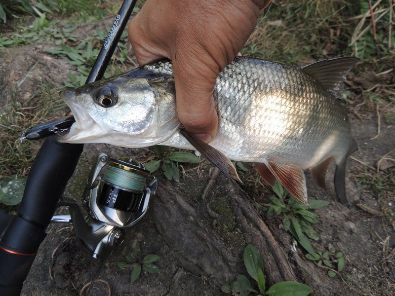 Работа с приманками. Удилищем я обзавелся в тот момент, когда голавль уже давно скатился в тартарары и не подавал никаких признаков жизни, судак, вероятно, ринулся вслед за ним, а на реке остался главенствовать жерех. Отличная рыба! И сдерживающий ресурс проверит, и фрикционным тормозом похрустит, да и несказанно порадует взор.