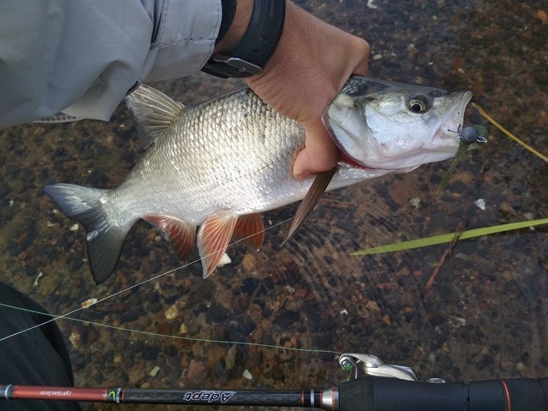 На достойном уровне «Адепт» показал себя в работе с легким джигом, которой мне не совсем хватало в серии Nibble. Я ловил в тот период, когда наша речная артерия больше похожа на капилляр: воды мало, течение не сильное, а следовательно, не нужны большие груза. Теста до 10 граммов мне оказалось вполне достаточно.
