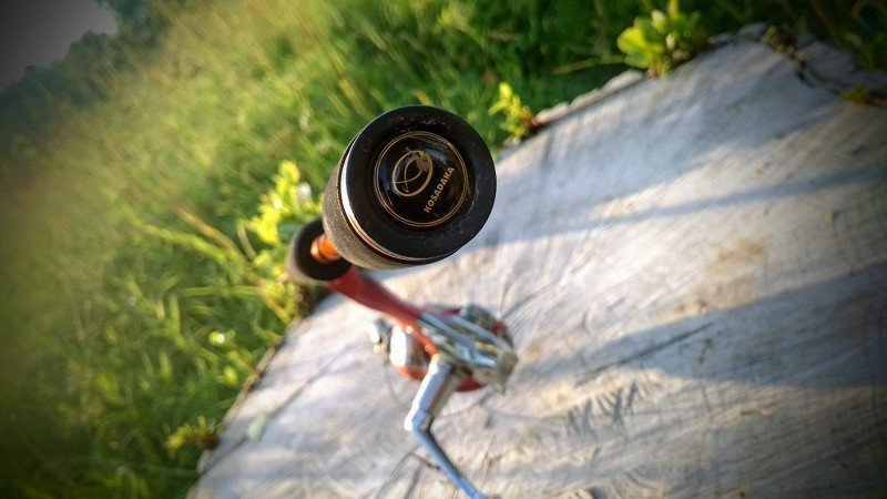 На катушкодержателе — наклейка с крупными буквами Kosadaka. Гайка катушкодержателя — нижняя, что лишний раз доставило мне удовольствие, люблю я такое расположение гайки.