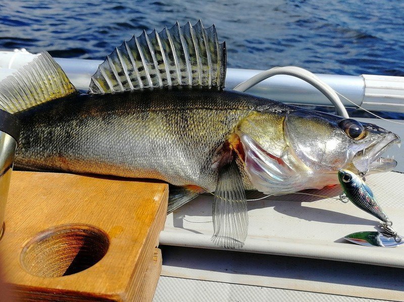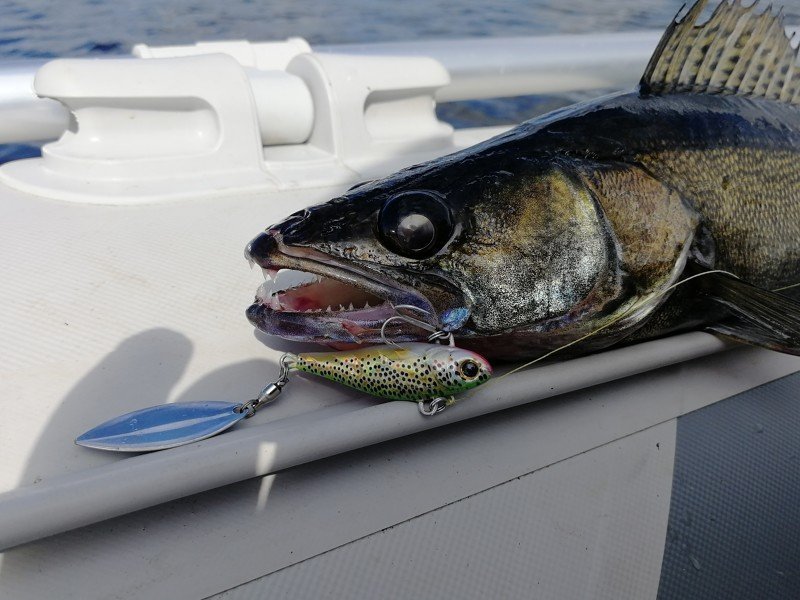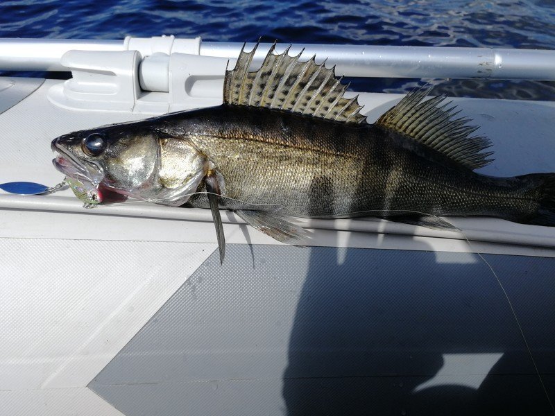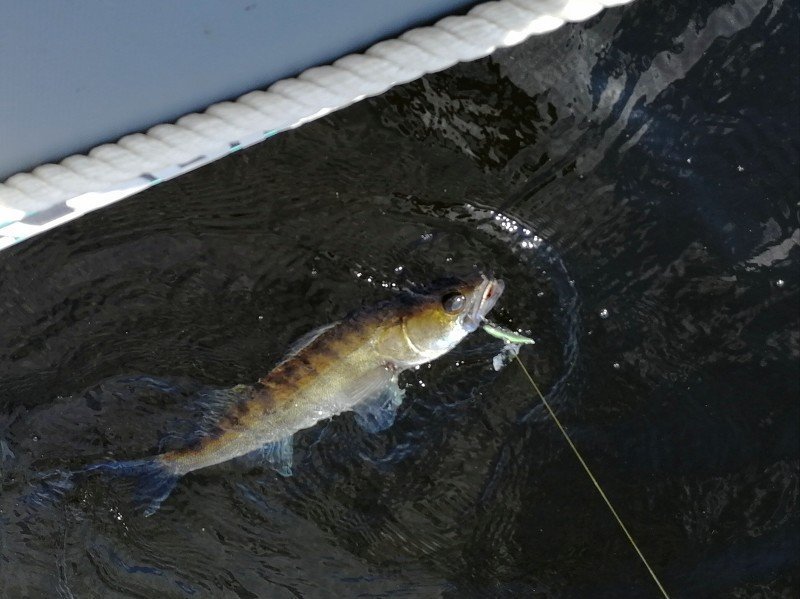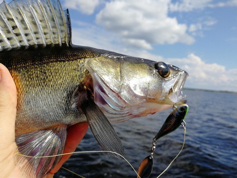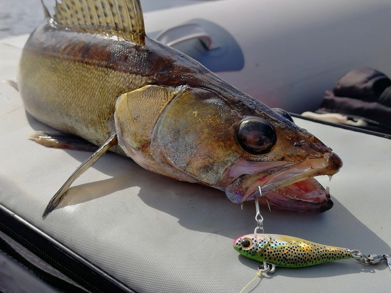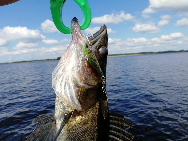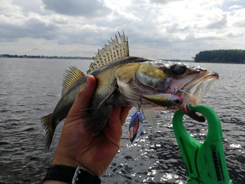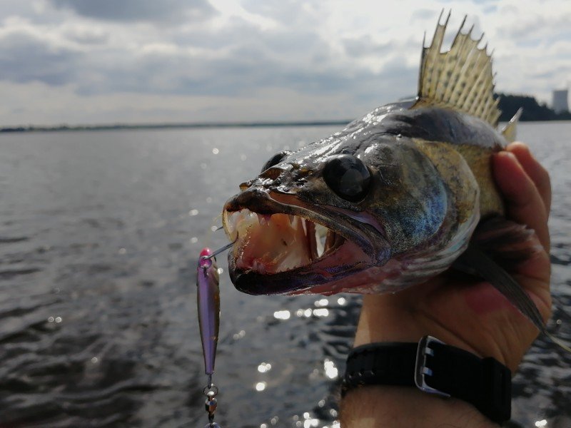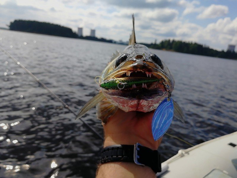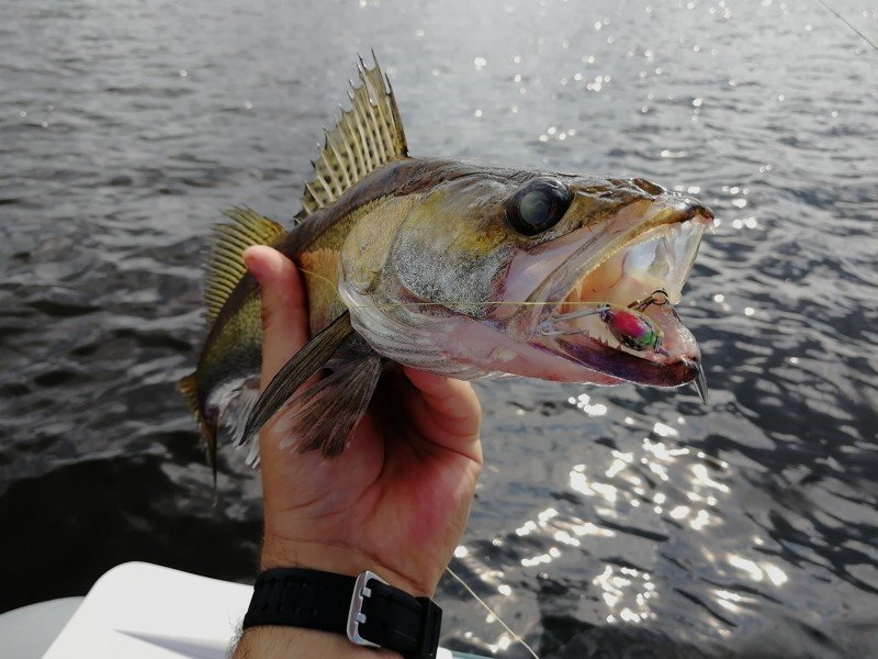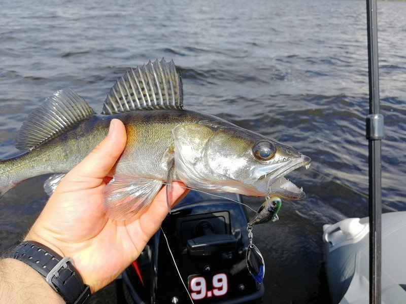 Самое интересное, что на 50мм приманку иногда с жадностью вешается судак почти такого же размера.