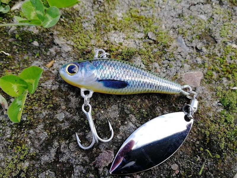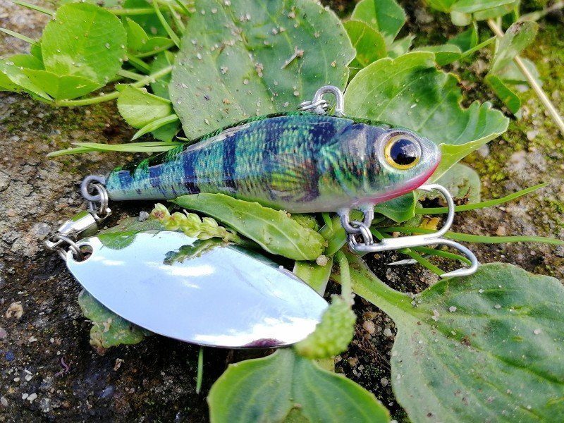 Теперь хотелось поговорить о способах ловли на данную приманку. Кольцо для крепления шнура находится в верхней части практически над тройником. Из-за этого тело в воде при проводке принимает почти вертикальное положение и имеет угол к лепестку около 90°, что даёт нам огромный простор для творчества.