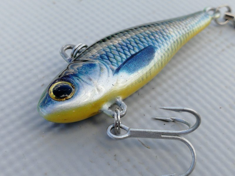 Именно в то время мне в руки попала очень необычная приманка, привезённая одним энтузиастом из «штатов». Из себя она представляла массивную джиг-головку, раскрашенную под рыбку, с шарнирно закреплённым одинарным крючком и круглым лепестком на «вертлюжке».