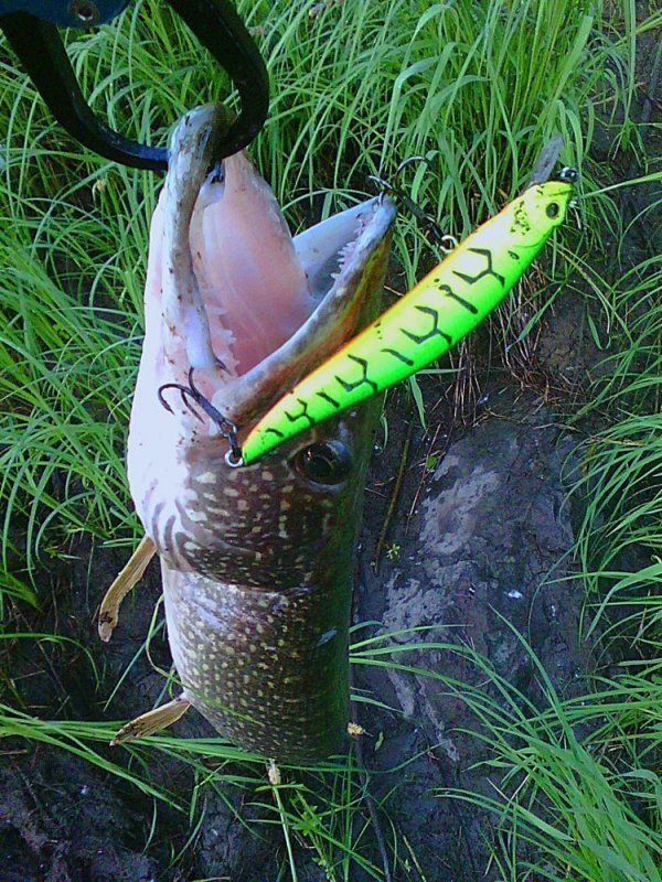 Покрытие воблера оказалось устойчивым к злым щучьим поклёвкам. Воблер конечно не бронированный, и какие никакие повреждения всё же остаются, без этого некуда, но краска не слезает с него после первой поклёвки 300 граммового шнурка, как это бывает, даже с многими именитыми японцами. Это на мой взгляд очень важно!