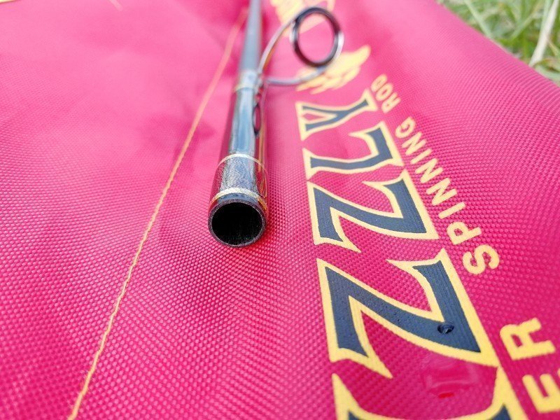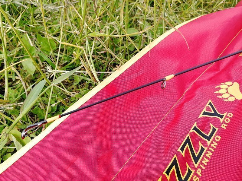 Сам бланк Grizzly выполнен из углепластика, к сожалению я не нашел его маркировки, но по ощущениям и «посылистости» спиннинга могу утверждать, что для производства использованы вполне достойные материалы. На бланке в близи с рукоятью нанесена надпись «GRIZZLY» и основная информация о спиннинге. Красно-коричневый цвет основания имеет интересную фактуру, которая добавляет солидности снасти. Срезы штекерного соединения выполнены достаточно ровно и имеют достойную внутреннею обработку благодаря чему сборка и разборка спиннинга происходит достаточно мягко и без «закусывания» Так же бланк снабжён «хуккипером» в простонародье держателем для крючка, что очень полезно для транспортировки снасти на небольшие расстояния.