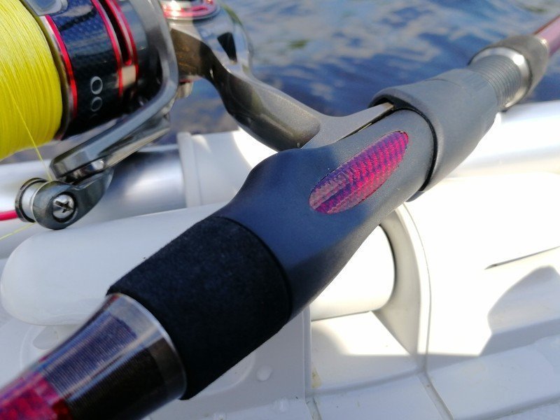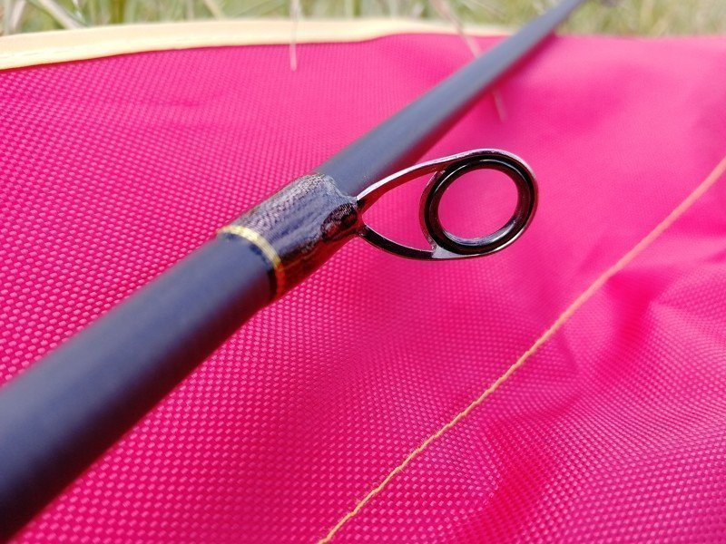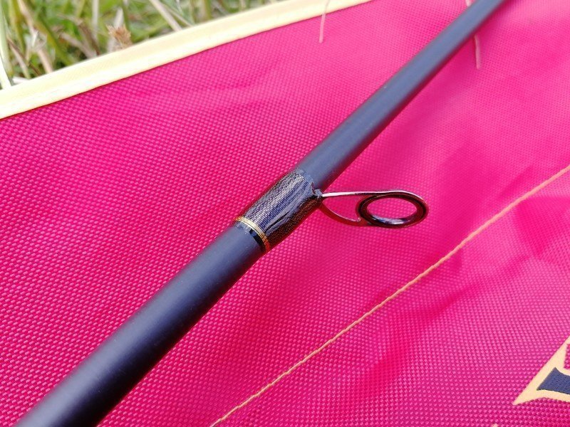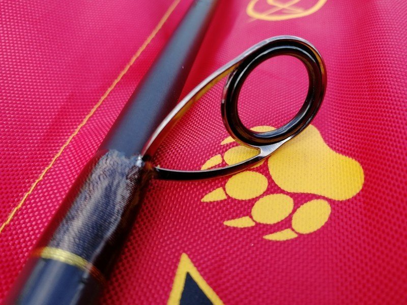 Заливка бандажа выполнена на уровне спиннингов средней ценовой категории, как бы придраться не к чему, но не Valkyrja и тем более не VIVO конечно. Бандаж крайних трех колец и тюльпана выполнен в оранжевом цвете, что очень помогает в ловле джигом при недостаточной освещенности, а сам тюльпан оснащен не много устаревшей, но все равно работающей защитой от захлестывания.