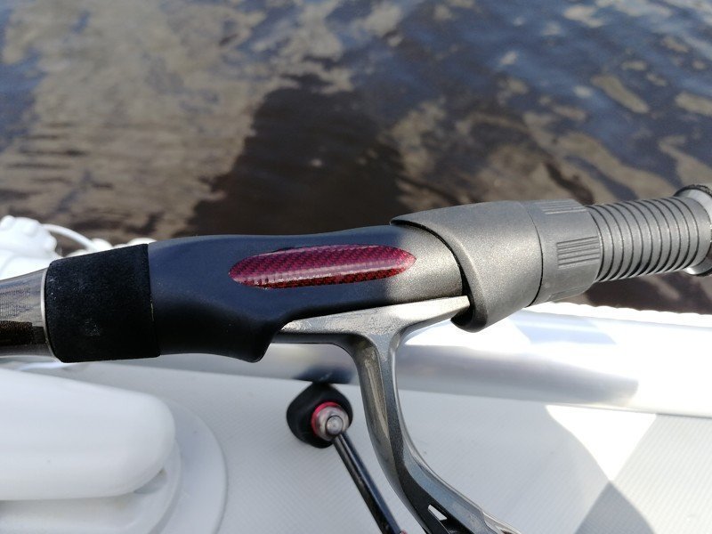 Рукоять выполнена из теплого EVA материала и имеет разнесенную конструкцию. Обладая достаточной длиной даже для высокого рыболова позволяет долгое время ловить тяжёлыми приманками без ощущения усталости кисти. На первый взгляд материал в меру плотный и не должен быть подвержен так скажем «осыпанию» после одного двух сезонов ловли. После некоторого времени использования, рукоять хоть и не выглядит уже как новая, но не притерпела не каких деформаций или прочих изменений.