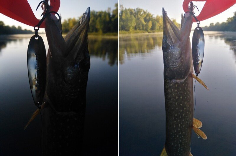 Основная модель, на которую было поймано действительно очень много рыбы — это 22 грамма. На одной из рыбалок, при поиске щуки на небольшой реке, она совершенно неожиданно для меня, разгромила с огромным счётом любимые и основные в таких поездках воблера, что и принудило присмотреться к ней более детально. Что удивило: управляемость! Казалось бы, что таким немаленьким куском железа из-за его плавучести, будет некомфортно ловить в местах с огромным количеством подводной растительности, но Croco Spoon в момент развеяла все мои сомнения. Площадь блесны способствовала не только понятной проводке в нужном горизонте, но и стабильной работе даже при наличии сильного течения. К тому же, колебалка отлично работает и на самых медленных скоростях, что так же показало отличные результаты при ловле зубастой.