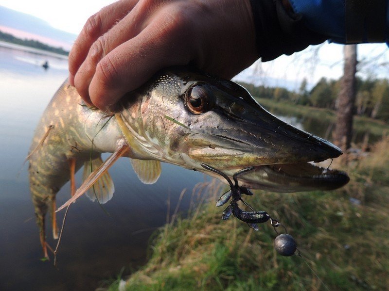 Здесь важную роль играет правильность подобранного крючка. Та самая талия не особо располагает к тому, чтобы ее проткнули посередине крючком, поэтому он должен быть меньше и остаться в туловище. Если поставить больший крючок, то он выйдет в хвостовую часть, и приманка потеряет первозданную игру, к тому же в этом случае сложно красиво нацепить приманку с первого раза. Оборот-два в зависимости от размеров катушки с легкими подрывами удилищем всегда приносили рыбу. В случае малых глубин и обильной растительности, не позволяющей классическую «ступеньку», допустима ловля на пелагический джиг с легонькой чебурашкой. При такой технике можно опробовать абсолютно любые способы ведения приманки, в общем — экспериментировать.