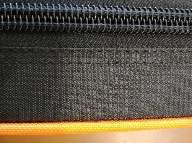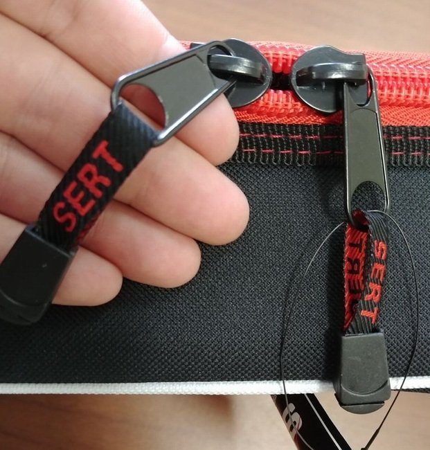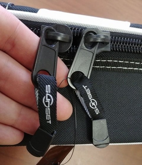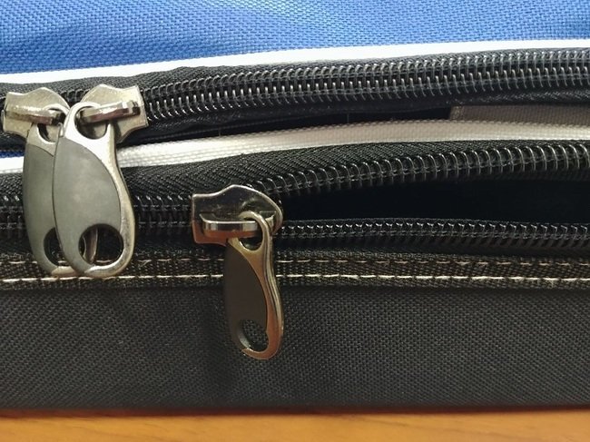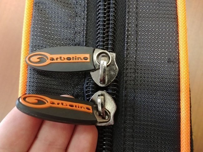 Такая молния и не заедает (даже если в нее попадет трава, веточка или кусочек материала от чехольчика спиннинга) и имея мощные «зубцы» никуда не разъедется.