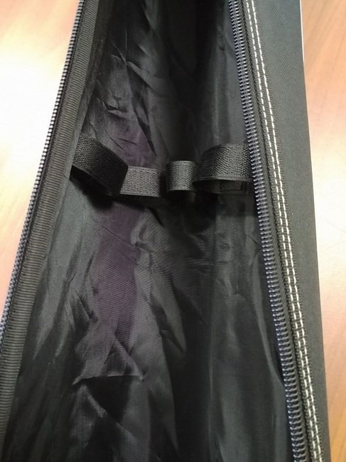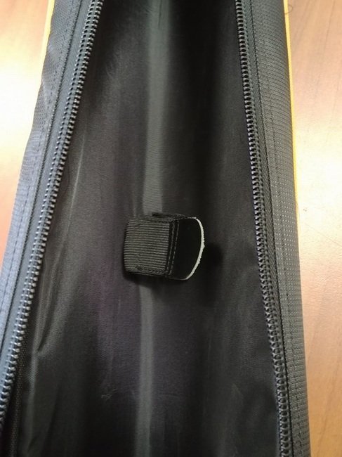 В такое отделение, легко вместится с десяток спиннингов и в тоже время, на липучке можно закрепить одну «палку» — никуда болтаться и биться она не будет.
