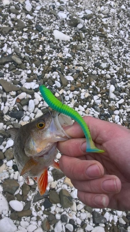 Я же, сказать честно, приобрёл и забыл, но вспомнить про неё меня заставил «его величество случай». На одной из рыбалок на матушке Волге, уже в завершении сезона, всё вроде бы, шло к тому, что поездка окажется совершенно провальной. Если в сумерках, ещё как-то получалось половить клыкастого хищника на воблеры, то с появлением первых лучей солнца, рыбалка пошла по принципу «как в ванну». И когда, мы уже фактически собирались домой, один из моих коллег, всё же поймал! Пусть это оказался налим, на оснастку отводной поводок, но пойман был на Keitech Swing Impact, что заставило меня срочно менять приманку! Но вот одной из самых знаменитых силиконовых приманок у меня не оказалось, а версия от компании Kosadaka, с отличной расцветкой была весьма кстати! К слову, и судак оценил данную приманку просто превосходно, что лишний раз доказало, правильность проработки геометрии.