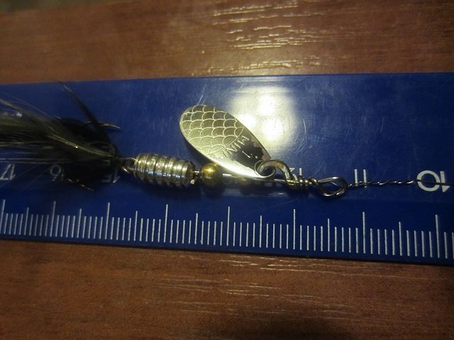 Чтоб ловить этой блесной — советую сделать небольшой поводок из первой струны (около 10 см) или иной тоненький поводочек. Я сделал поводок вообще без застёжек и вертлюга, цепляю поводок к шнуру миниатюрной безузловой застёжкой, а блесну цепляю — раскручивая и скручивая нижнюю часть поводка. Так лучше клюют окуни и прочней узел.