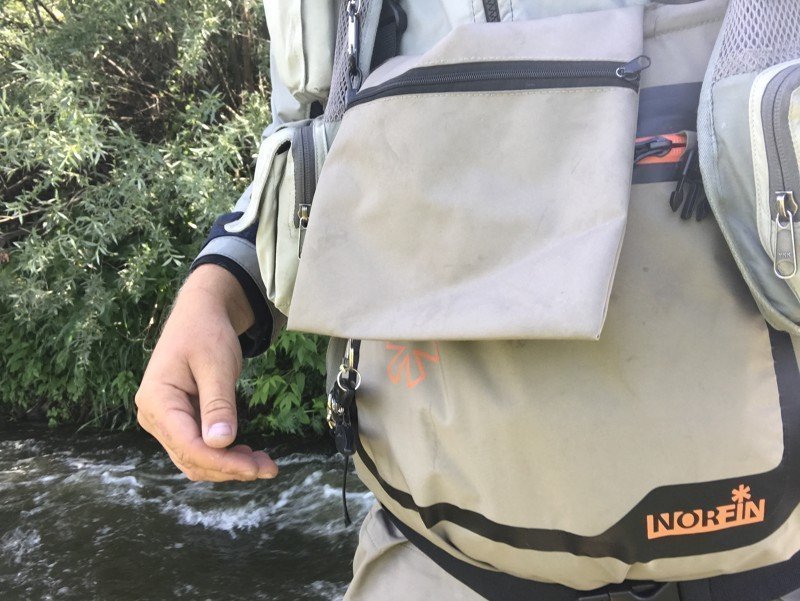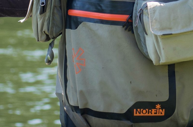 Как я говорил ранее, вейдерсы обычно делают из 3-4 слоев. Nofrin Flow сделаны из 4-х основных слоёв. Это защитные внутренние и внешние слои, а так же мембранный слой. Дышащая способность материала из которого сделаны эти вейдерсы 4000г на квадратный метр за 24 часа, а водонепроницаемость 20000 миллиметров. Это очень даже хорошие показатели, по которым можно судить о качестве материала. Приведу пример, совсем недавно я был на побережье Черного моря, ловил рыбу на горных речках Кавказа при температуре +36 градусов, тело и ноги совсем не потели, ловля была очень комфортной и продолжительной.