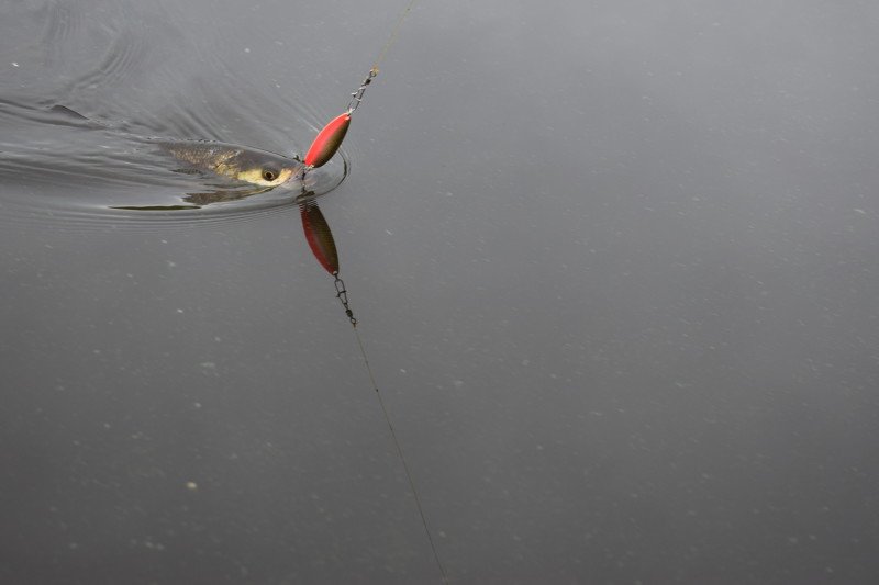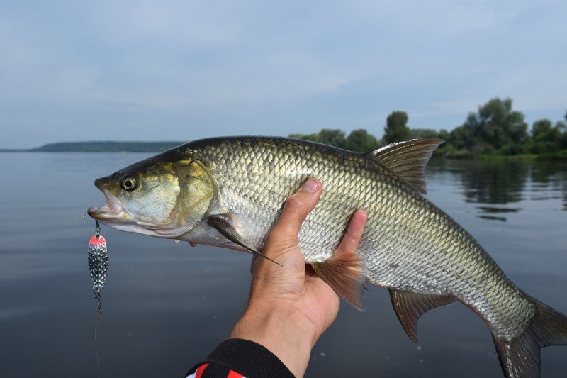 Приходилось ловить не только крупного жереха, но и селодочный размер охотно кусает блесны.