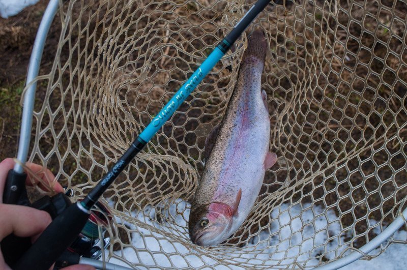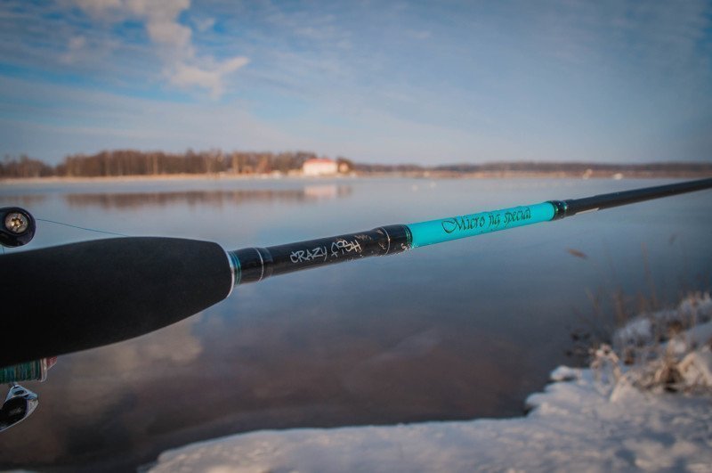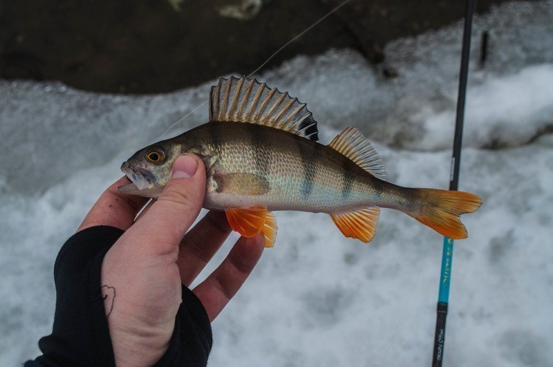 На следующий день после получения я уже был на водоёме и жаждил увидеть поклёвки. Даже температура в -20 градусов меня не остановила. В тот день я ловил только на микроджиг с рабочими весами 1 и 2 грамма. Клевал в основном окунь до 100 грамм и попадались совсем мелкие экземпляры по 15-20 грамм. После этой рыбалки удалось узнать кое-что о спиннинге, а именно о его «чуйке» за счёт своей жёсткости, за счёт строя «Extra Fast», поклёвка даже очень мелкого окуня отчётливо передавалась в руку.