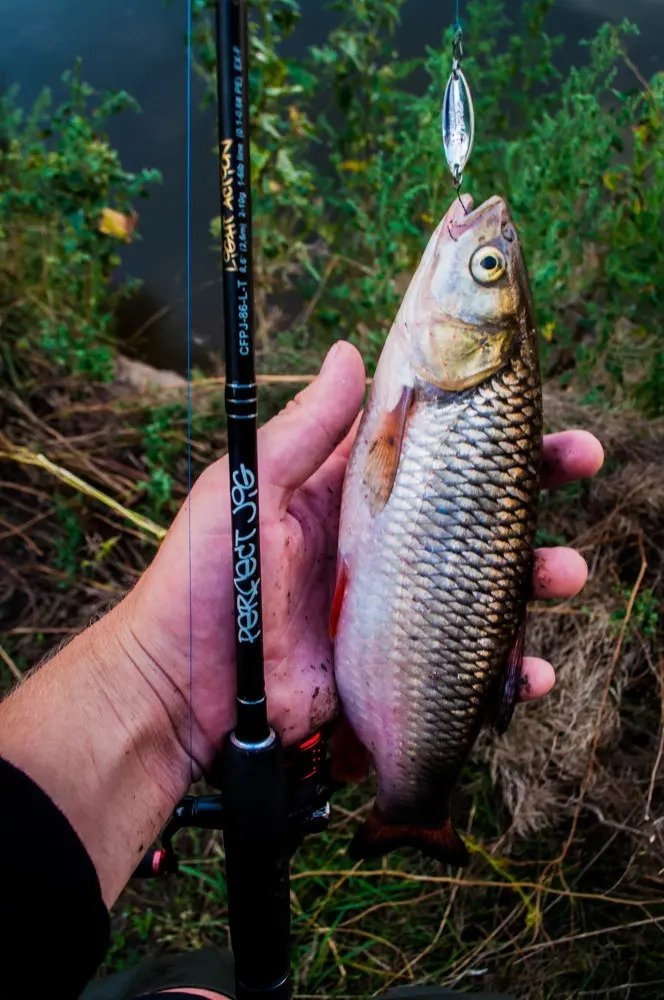 Ловили мы его тогда исключительно на колебло, ставили приманки весом от 2-ух до 5-ти грамм. Большим плюсом тут является длинна палочки, можно посылать приманку под противоположный берег, голавлятники поймут о чем я, это очень важная составляющая, ну конечно когда еще пространство позволяет сделать заброс длинной палкой. Можно подвести итог по белому хищнику, что тут главным плюсом является — длина и опять же сдерживание мощных рывков крупной рыбы, а как известно, что голавль, что жерех очень сильны.