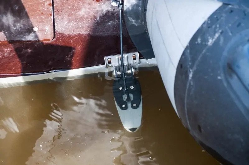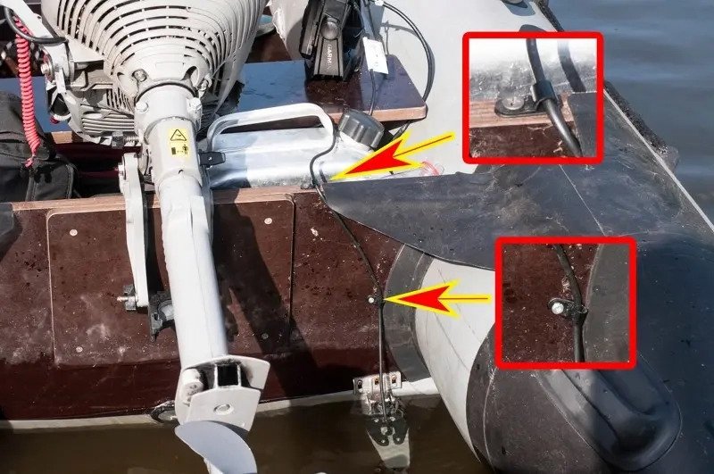 У этого эхолота есть два варианта установки трансдьюсера, то есть датчика. Первый вариант — это установка на электрический мотор, а второй вариант установка на транец лодки.