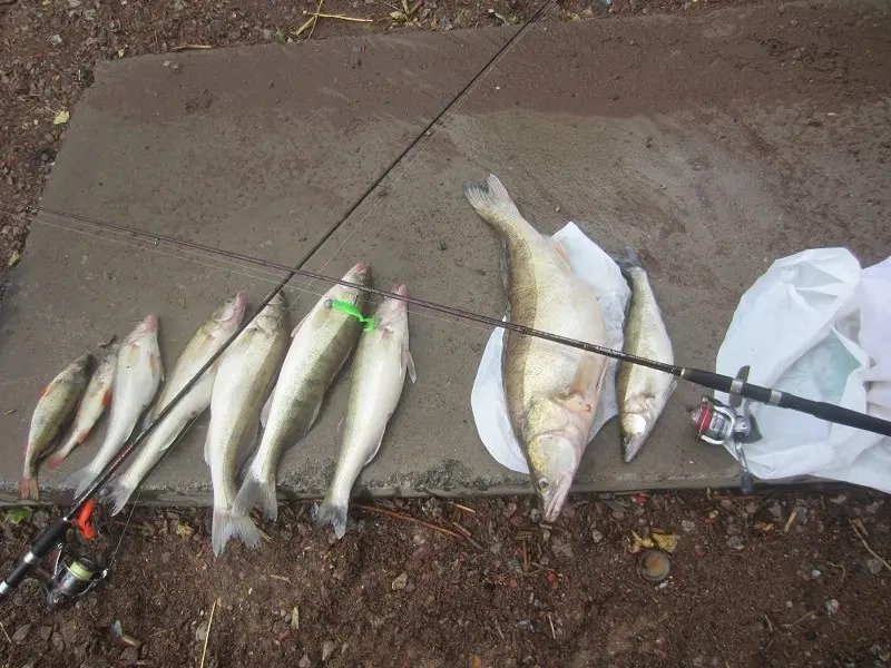 За рыбалку было мною поймано 5 судаков до 2 кг и 2 окуня. Напарник изловил 2 судака, но один из них — трофейный на 4,9 кг. В условиях волнения и ветра некоторые поклевки он просто не ощущал, судак «подвисал».