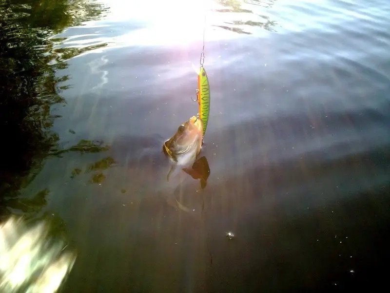 Я уже проплыл впустую несколько дистанций забросов, а поклёвок всё ещё не было. Но вот, хоть и не сильный, но долгожданный удар и сопротивление на другом конце шнура!