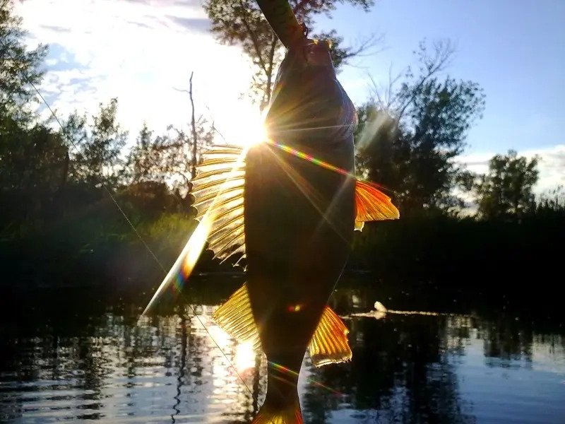 А вот чуть позже, у другой притопленной коряги, к вобреру пристегнулся окунь уже более крупный, чем предыдущий!