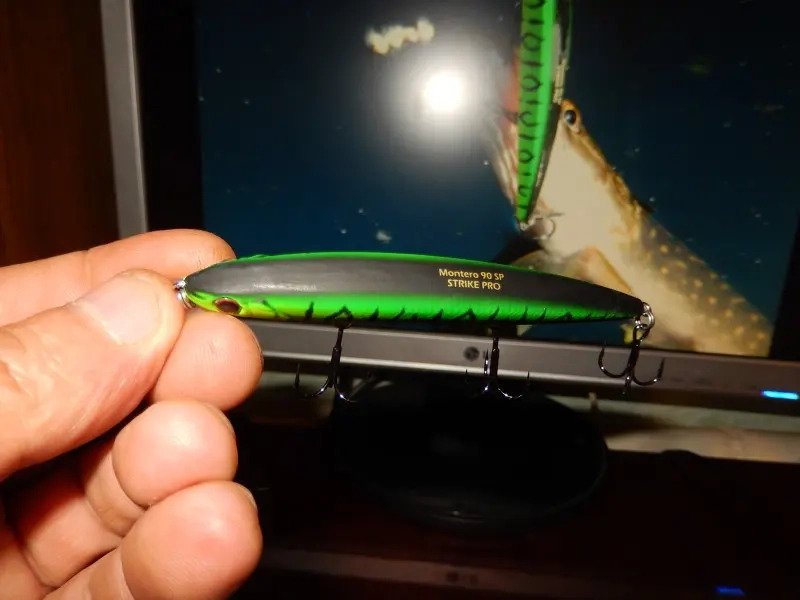 Лишнего с собой ничего не брал: только лодка, спинниг и несколько воблеров. Да и что ещё брать, время-то ограничено. На одну дорогу и накачку лодки уйдёт около часа. Ну а начать сегодняшний тест я решил с воблера Montero 90SP в цвете #GC01S.