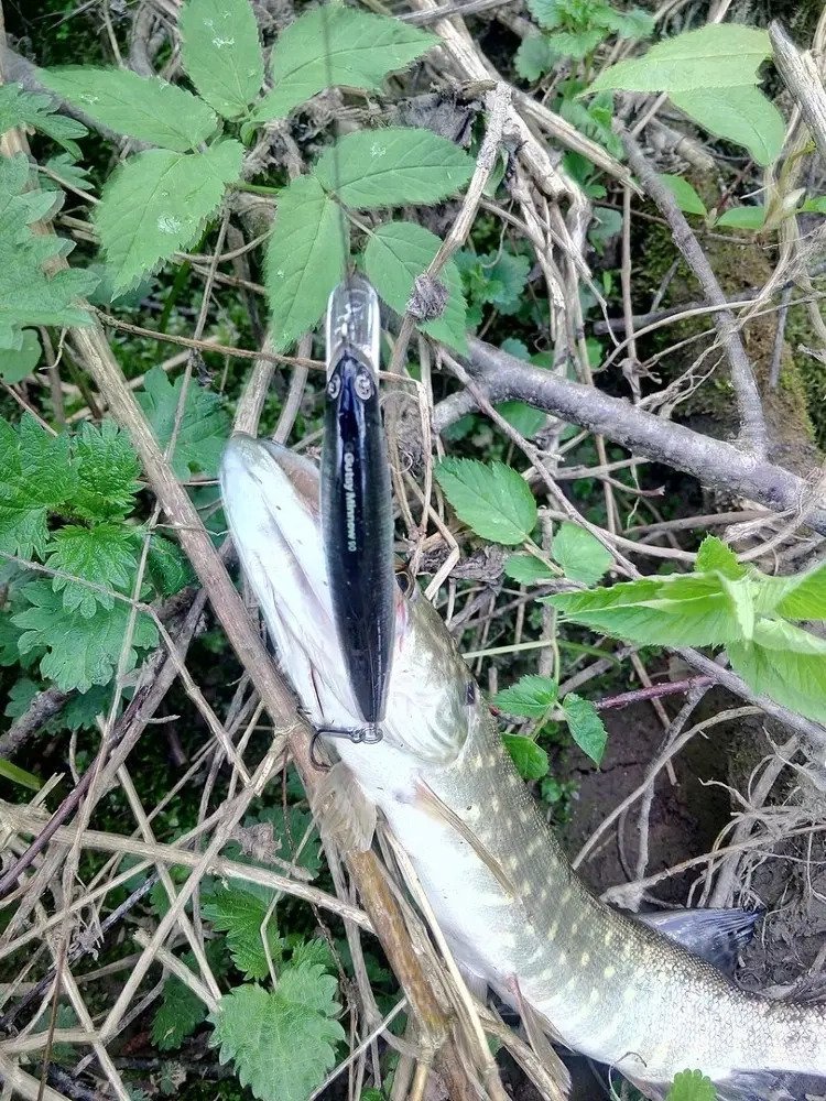 Отправился я с товарищем на рыбалочку: на новую неизвестную до того дня, речушку. Прибыв на место видим: ширина речушки около 20 метров в среднем, непроходимые берега с буреломом и глубина до метра. Стоя на мосту выглядело это все не сверх перспективно, но раз приехали, надо идти. Собираю палочку и в путь. Лезем с товарищем через кусты и бурелом, пробираемся к краю реки. Хоть местечко нашли где встать, над нависшими деревьями. Посмотрев на речку, сразу принимаю решение начинать ловлю с воблерков, никакой джиг неуместен: мелко, трава и коряги. Перебирая приманки в коробочке, вдруг решаю поставить именно гатси минноу. А он у меня в коробочке еще — новенький, девственный, так сказать. Боком серебряным поигрывает, переливается на солнце, плавающий, так еще и идет совсем не глубоко: до метра. Точно его! Ставлю, делаю первый заброс, смотрю как играет. Вытворяет что-то невообразимое: на рывках развороты по 90 градусов, переваливается на течке с боку на бок, разворачивается. В общем совсем не классическая игра, по крайней мере на течке. Ну да ладно. Кстати воблер обладает системой дальнего полета и летит на приличные расстояния, не прикладывая усилий, по началу, чуть не выкинул его на противоположный берег. Делаю второй заброс вдоль береговой линии и через несколько рывков, следя за воблером, вижу, как из неоткуда вылетает щучка под двушник и… МАЖЕТ! Зараза. Аж вздрогнул. Не ожидал такого. Делаю еще пару забросов, не выходит, зато прям перед ногами, метров в двух от меня, вылетает шнурок грамм на 400 и жадно начинает грызть моего «счастливчика». Подсечка, и вот он уже у меня в руках. Быстренько его отпускаю. Настроение у нас поднялось. Рыба есть, а это только пришли. Друг ставит максимально похожего воблерочка, и двигаемся чуть дальше.