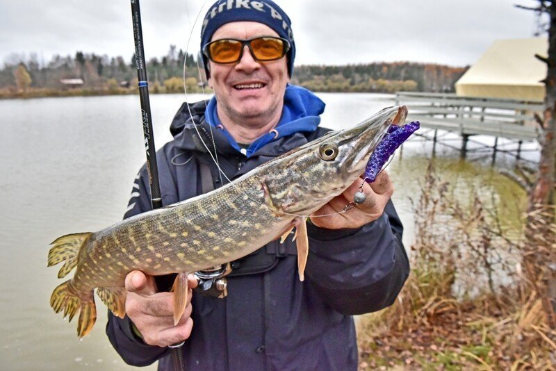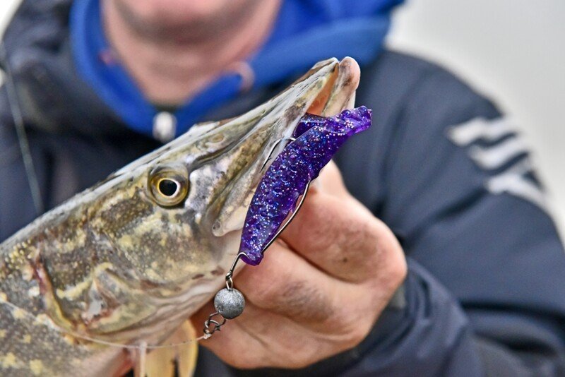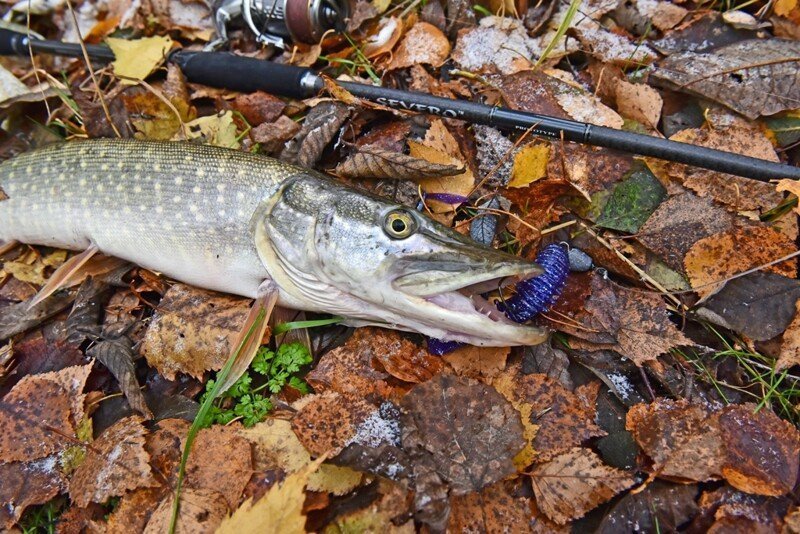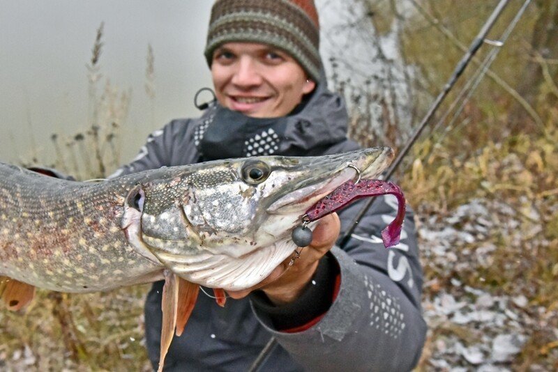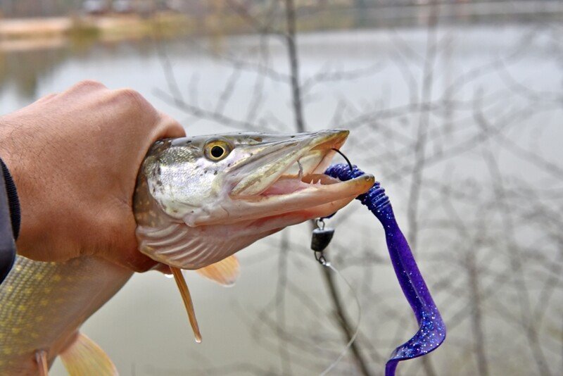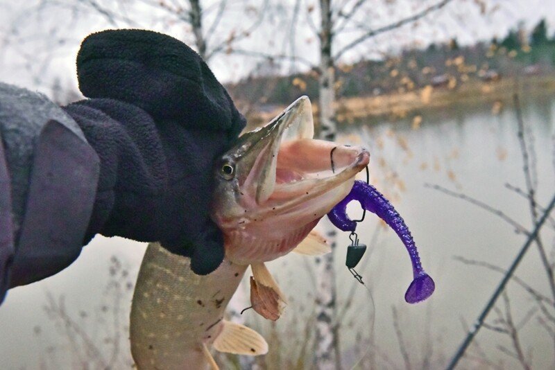 Я же ждал конкретно «часа волка» и уже ближе к сумеркам попал на качественный клев. Щука атаковала резину с различными весами, разных размеров и форм, иногда даже по несколько с одной точки.
