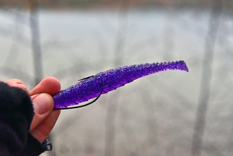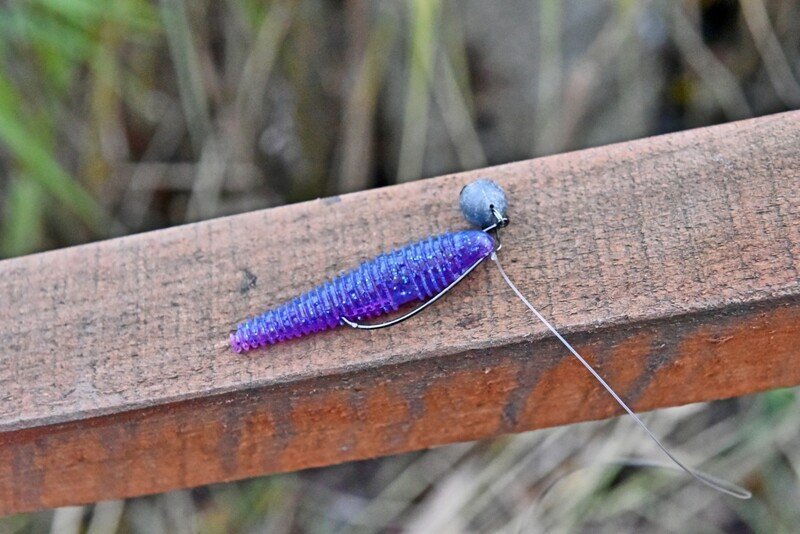 Я же подумал, почему бы не увеличить приманку до 7-дюймового фиолетового твистера, и щука с первой же проводки одобрила мой выбор поклевкой. Неплохо!