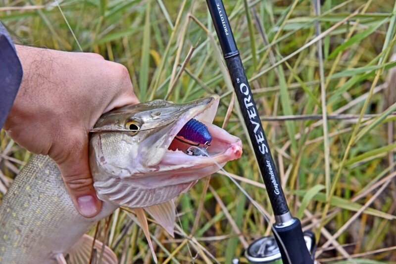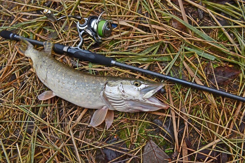 Но в этот раз тактика оправдалась — проводке на десятой под самым берегом почти в отвес щука можно врезалась в приманку, и не подсечь после такой четкой поклевки было просто невозможно! Она оказалась неплохой и прилично повозила и берега.