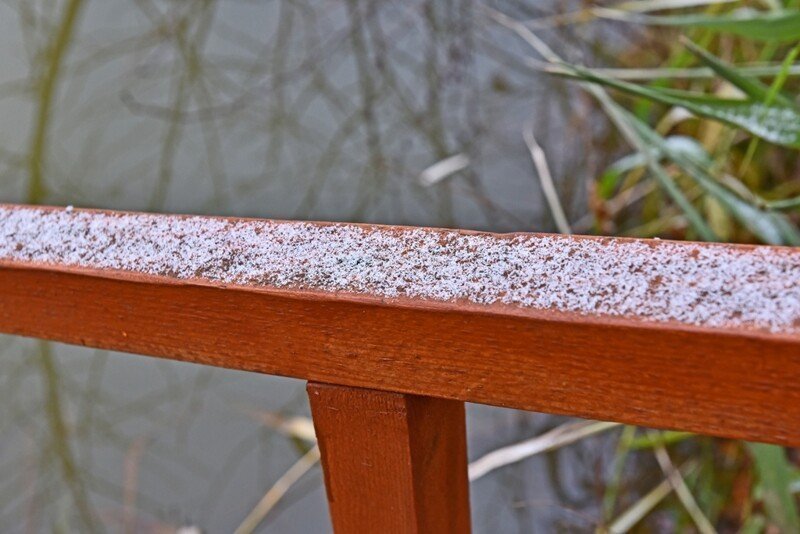 Холод по-видимому отпугнул конкурентов и народу на водоеме было немного. Каким-то чудом наше козырное место пустовало, и первые забросы я решил осуществить с той самой лестницы. Хотя в последнюю рыбалку поклевок тут было уже минимум.