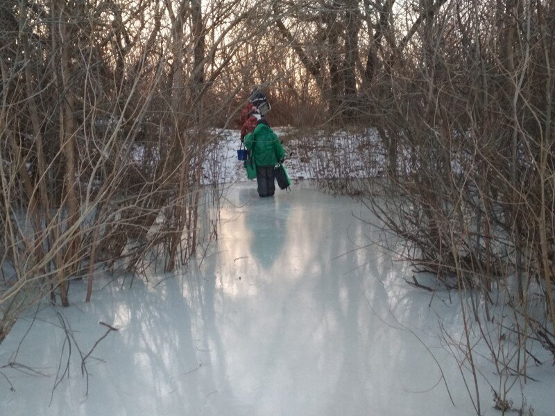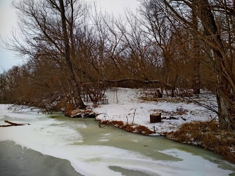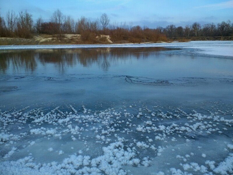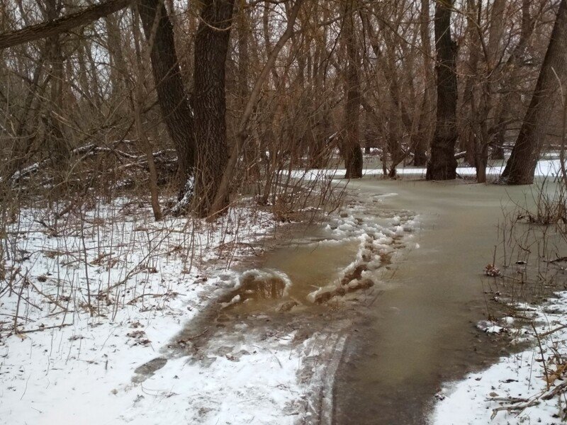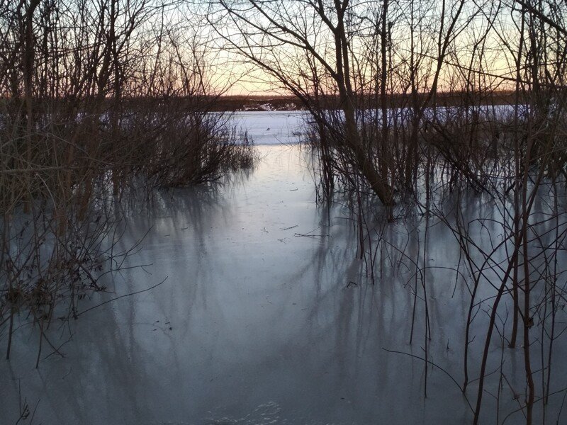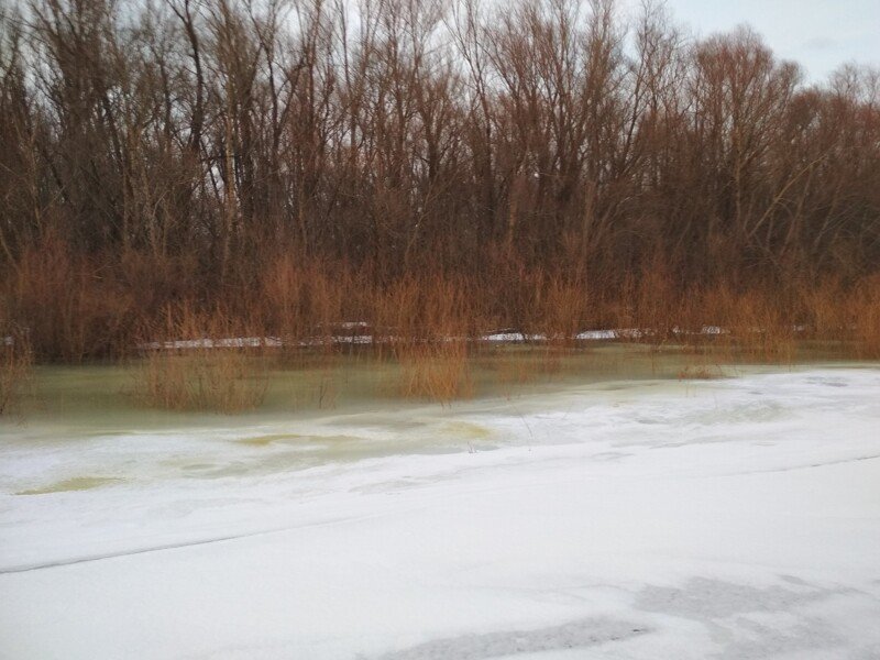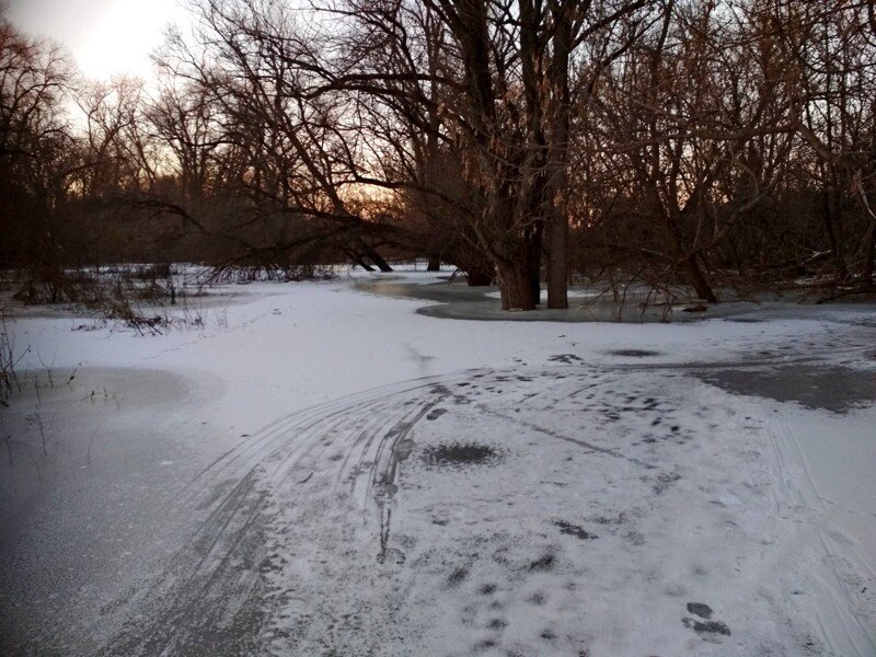 Хопёр дальше, за кустами, а это замёрзший каток, после оттепели и разлива.