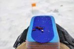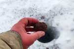 На втором проходе клевало чуть хуже, несмотря на докорм. Возможно, потому что солнце затянуло тучами, может потому что ветер поменялся и снег пошёл, но чем дальше, тем клёв сходил на нет. После двух часов рыба лишь изредка поклёвывала на одной из лунок. Попробовал бурить новые лунки, какие-то кормил, какие-то нет, результат на всех был одинаковый - ничего, кроме ершей и мелкого окуня.