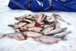 Ловил "овсинкой" 0,43 г на леске 0,074 мм, и для данных условий этого было достаточно. Первый же проход по лункам приятно удивил.