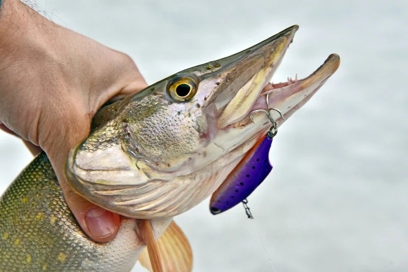 Поначалу поклевки происходили на паузах после подбросов вверх, но потом сбросы вниз стали лучше активизировать щуку. Иной раз она реагировала на плавную подачу приманки, а в другой наоборот ждала резкости. Были поклевки и на проводку в стиле традиционной мормышки.