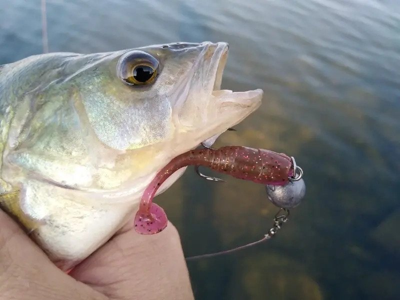 Чуть чаще стал чередовать приманки: Несколько забросов джигом, пару забросов воблером, и снова джиг. Несколько откусанных хвостов, уничтоженная поролонка, но воблеры всё равно продолжали молчать. Единственный полосатый отозвался на крэнк, но в силу статистики я пришёл к выводу, что это была скорее случайность, чем закономерность. От чего и почему не реализовал не единого контакта с клыкастым я и вовсе не берусь предполагать, хоть и были мысли о незначительном размере данного хищника. Однако после семи утра, когда казалось что активность спадёт «на нет», у меня и вовсе получилось подобрать стабильный «ключик» к поклёвкам окуня. Небольшой перегруз, плавные подбросы Baby Rockfish и очередная полёвка не заставит себя ждать. Был и ещё один интересный момент перед самым отъездом, а точнее поклёвка которая закончилась обрывом шнура об подводные баррикады. И, если верить собственным ощущениям, то это снова был голавль и весьма достойный. Быть может, это и был повод вернуться сюда ещё раз?