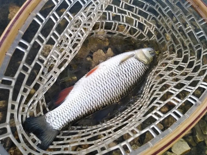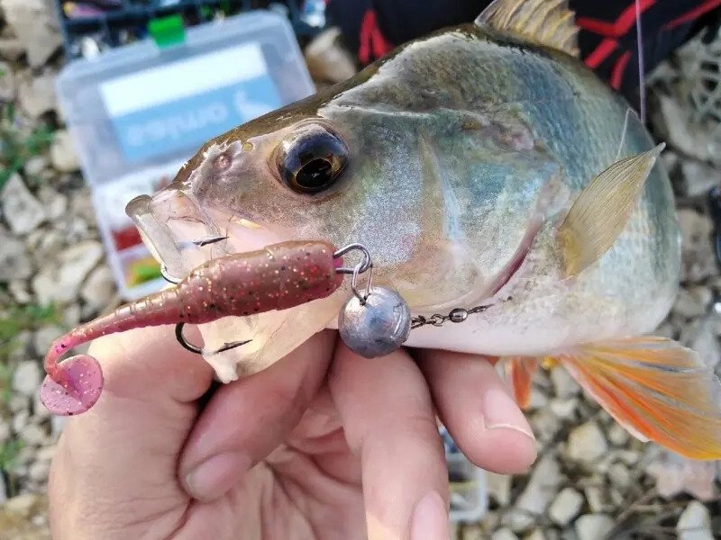 Классический джиг, медленная «ступенька» и на первом же забросе отличается яркий виброхвост Basara от Lucky John, на который с удовольствием отозвался весьма неплохого размера окунь. Плохая примета? Как бы не так! Очередная поклёвка и очередной полосатый снова красуется перед камерой моего телефона. Быть может, угадал с приманкой? Заброс по ветру, где «на выбросе» получалось хоть немного «обработать» самую границу небольшого приямка, на выходе из которого и случилась лёгкая поклёвка. «Небольшой окунёк» — тогда подумал я, уверенно работая катушкой и уже перебирая в мыслях куда я сделаю следующий заброс. А оказалось он просто плыл мне на встречу! Голавль?! Ох, он и дал конечно мне «жару» в береговом сражении, но всё-таки был успешно доставлен на берег, хоть и не без помощи подсачека. В такие моменты и приходит понимание, что рыбалка уже состоялась и была абсолютно успешной, даже несмотря на то, что это был всего пятый или шестой заброс. Согласитесь, ведь приятная неожиданность?