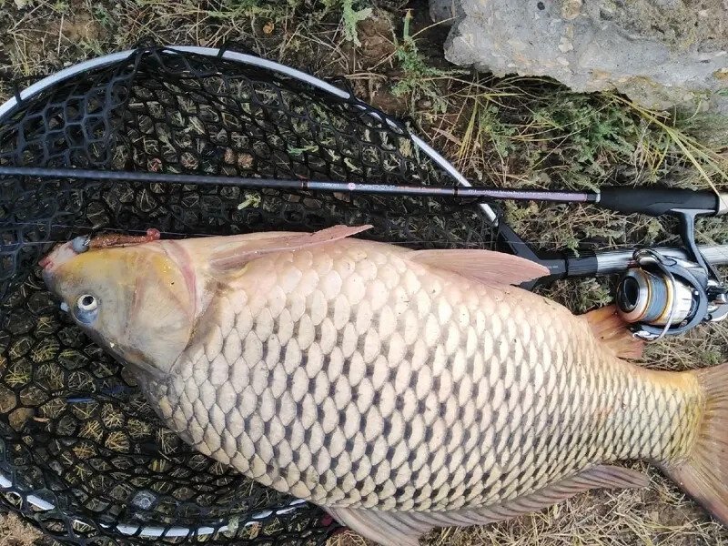 Заброс Baby Rockfish от Lucky John в единственный небольшой приямок, что располагается на данном рельефе. Первая ступенька, вторая... И неожиданное и уверенное «тук» пробудило весь уснувший во мне запас адреналина. «Да, ладно?!» — услышав нескончаемый визг фрикциона, напарник бросил свой спиннинг и приготовился к встрече неожиданного гостя. Даже не представляю сколько это всё длилось... Казалось, что вот сейчас, уже близко! Но рыба снова сматывает десятки метров довольно тоненького шнура, держа нас в сомнении, что знакомство в итоге состоится... Кажется показался... Есть! Удивление от такой встречи, частично, и не покидает меня до сих пор. Случайность ли это? Возможно! Но даже по меркам спортивного зачёта, данная рыбка принималась бы к взвешиванию. Чем ему понравилась данный виброхвостик, от чего и почему он решил атаковать именно его — пусть останется загадкой. Но эти эмоции, в особенности от успешного пусть и продолжительного вываживания на лёгкую снасть, просто невозможно передать словами. И эти несколько минут останутся в памяти ещё на очень долгое время. Поверьте, это нужно испытать!