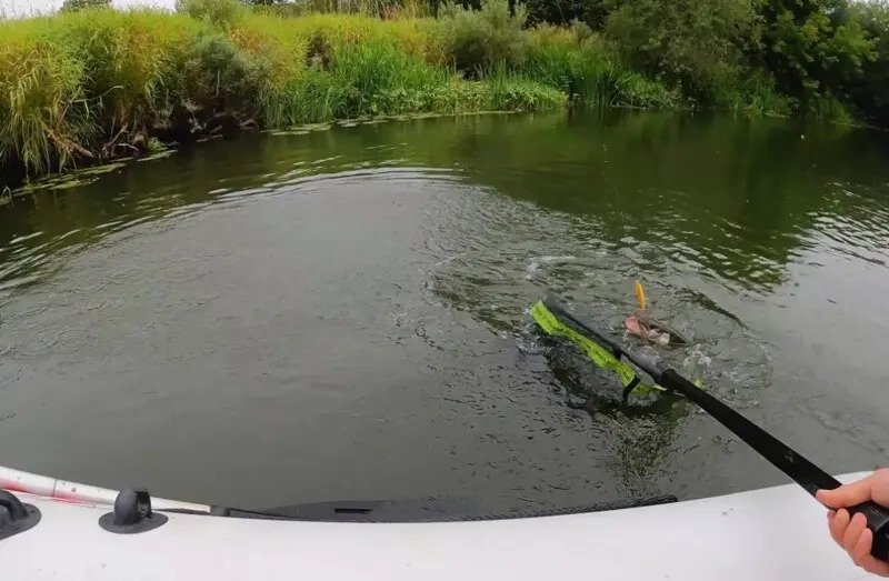 Далее мой интерес привлекла здоровая блесна из джерковой коробки, которую я хотел погонять вдоль коряг. И эффект от оной превзошёл все ожидания — «шнурье» стало вылетать со всех щелей и щипать колебалку. Временами размер был близок к приемлемому, и настроение заметно улучшалось по «проплытии» очередного участка реки.