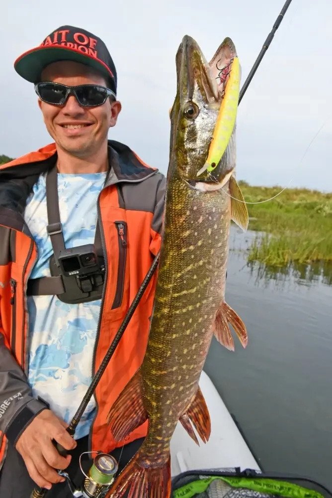 После было ещё несколько атак и поимок мелочи, но козырную поклевку я оставил напоследок. Снова точный заброс и только успел сделать пару рывков воблера, как щука выстрелила из своего укрытия! Тут и фрикцион впервые за долгое время запел свою песню — кайф!
