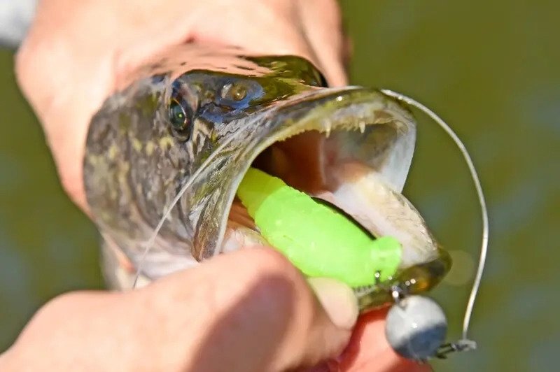 Отец решил сменить тактику и поставить лёгкий джиг, и его эксперимент удался сразу же, после чёткого удара по свалившейся с коряги приманке скоро щука оказалась в лодке.