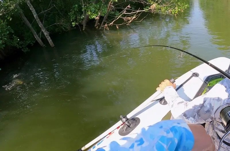 А та сфокусировалась в этот раз под нависшими ветвями деревьев, где у меня случилась целая серия поклевок разнокалиберных щучек.
